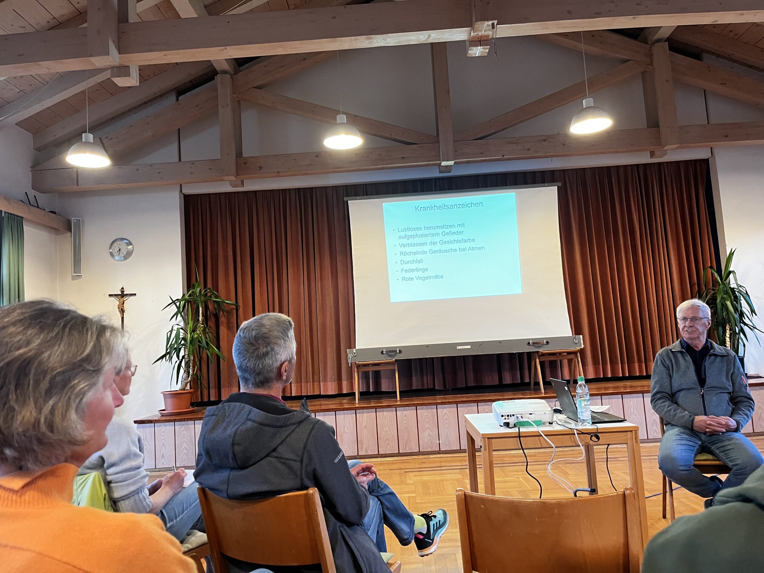 Das Huhn der Rasse Plymouth Rocks sei sehr zutraulich, aber in seinem Bestand gefährdet. Die Seidenhühner der Rasse Australorps brüten sehr gern. Insgesamt gebe es etwa 180 verschiedene Hühnerrassen und noch viel mehr Farbschläge. Abschließend ging Lechner auf Fragen der Besucher zu Themen wie Mauser, Brut, automatische Hühnerklappen, Auswahl des Futters und zum Alter der Tiere ein. Es war ein wirklich sehr besonderer Vortrag mit vielen praktischen Tipps.